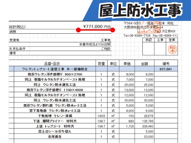 🧾 見積書【事例①】マンション屋上2か所の防水工事+窓土台シール打ち替え