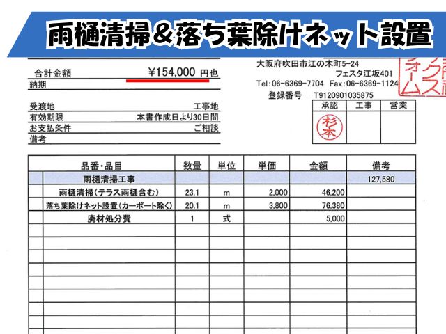 🧾 見積書【事例②】雨どい清掃&落ち葉除けネットの設置