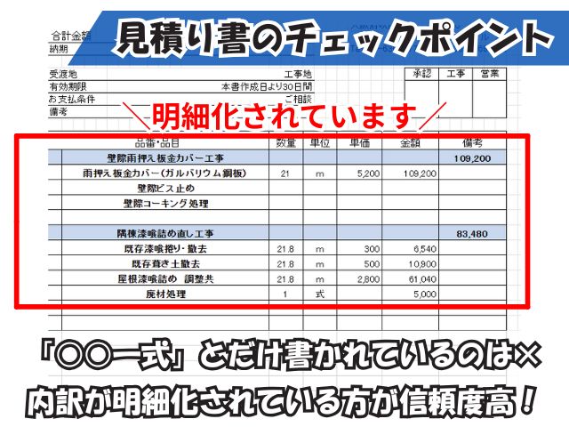 ✅ 2. 見積書が明細化されている(「○○一式」とだけ書かれていない)
