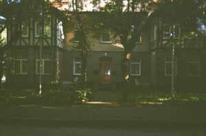 中庭にはシンボルツリーとしてアオダモを植栽。四季の移ろいを室内から楽しめます。夜はライトアップすることで、幻想的な雰囲気に。
